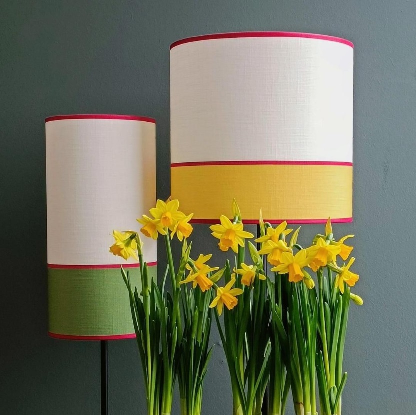 Les abat-jour de la collection Massara sont fabriqués à la main dans les Hauts-de-France. Ils sont disponibles en 6 tailles et 12 combinaisons de couleurs.
