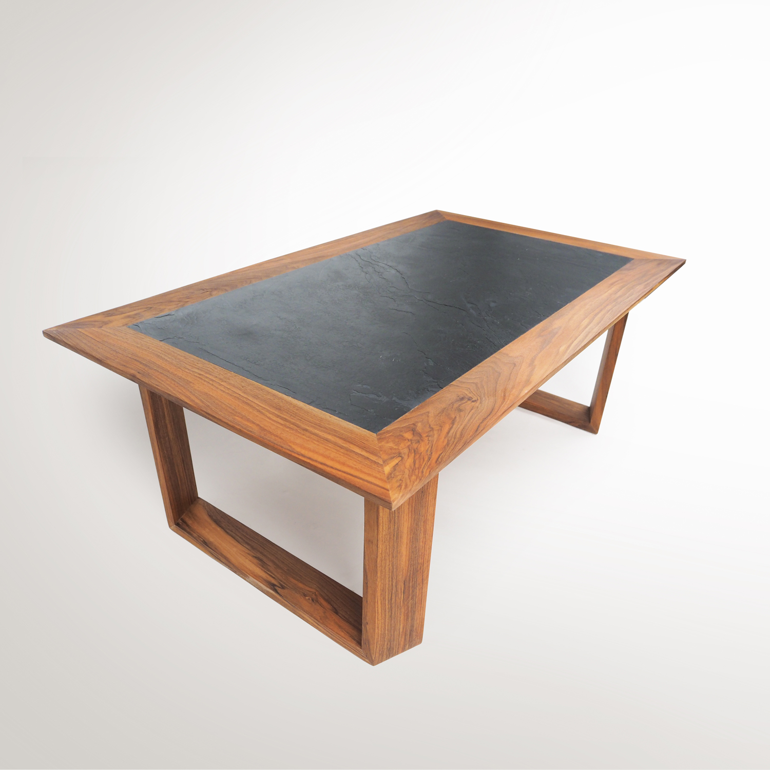 - La table Virgule signé Rémi Canivet, le pari réussi de jouer la légèreté avec ce mariage de matières naturelles la pierre et le bois massif.